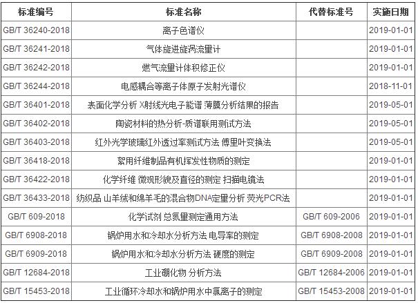 393項(xiàng)國(guó)家標(biāo)準(zhǔn)中,涉及了多項(xiàng)儀器及檢測(cè)方法,包括離子色譜儀、電感耦合等離子體原子發(fā)射光譜儀、傅里葉變換紅外光譜、掃描電鏡等。