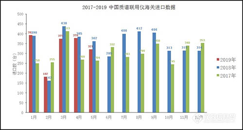 2017-2019(1-5月)質(zhì)譜聯(lián)用儀海關(guān)逐月進(jìn)口數(shù)據(jù)