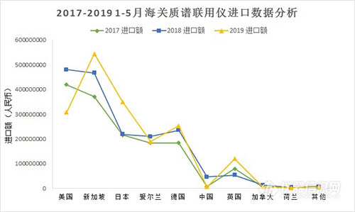 當(dāng)前,中國市場上的商品化的質(zhì)譜聯(lián)用儀還是以進(jìn)口為主,質(zhì)譜聯(lián)用儀的進(jìn)口情況在一定程度上,也反映了我國目前質(zhì)譜聯(lián)用儀整體市場的一些情況。從2018年3月,中美貿(mào)易戰(zhàn)打響,對整個科學(xué)儀器市場產(chǎn)生重大影響。質(zhì)譜聯(lián)用儀作為一類重要的科學(xué)儀器,在貿(mào)易戰(zhàn)中到底受到了怎樣的影響也備受關(guān)注。為此,儀器信息網(wǎng)特別對2017、2018年及2019年1-5月,海關(guān)質(zhì)譜聯(lián)用儀進(jìn)口數(shù)據(jù)進(jìn)行了匯總分析,為大家了解中國目前質(zhì)譜聯(lián)用儀市場做一個參考。