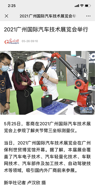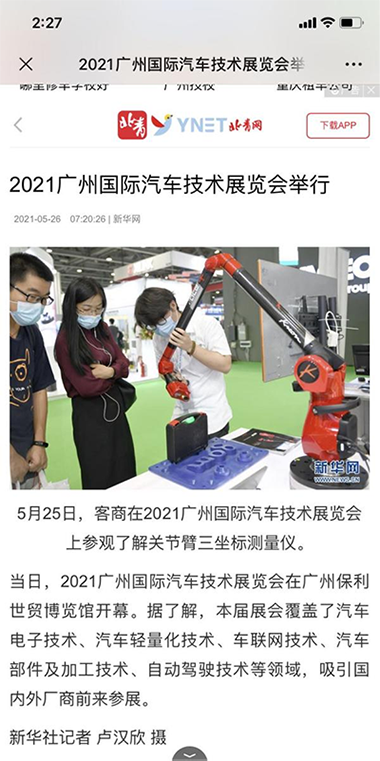 鴻華科技有限公司展位及展機(jī)-法國科瑞朗Kreon關(guān)節(jié)臂三坐標(biāo)測量儀備受青睞,吸引不少客商駐足垂詢,并得到新華網(wǎng)、中華人民共和國中央人民政府網(wǎng)、搜狐網(wǎng)、北青網(wǎng)等知名媒體關(guān)注及入鏡報(bào)道。
