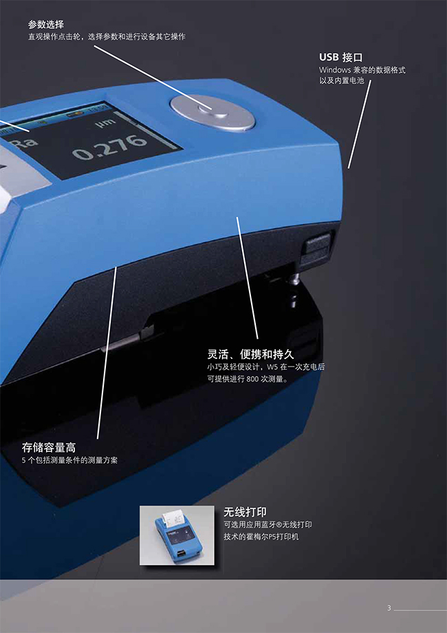 HOMMEL霍梅爾表面粗糙度測量儀W5可選配緊湊型熱敏打印機,可使用藍牙無線打印技術,無需電纜,將打印結果當場記錄下來,打印機由粗糙度測量儀控制。用戶可直接塞入紙卷,關閉封蓋,完成打印。